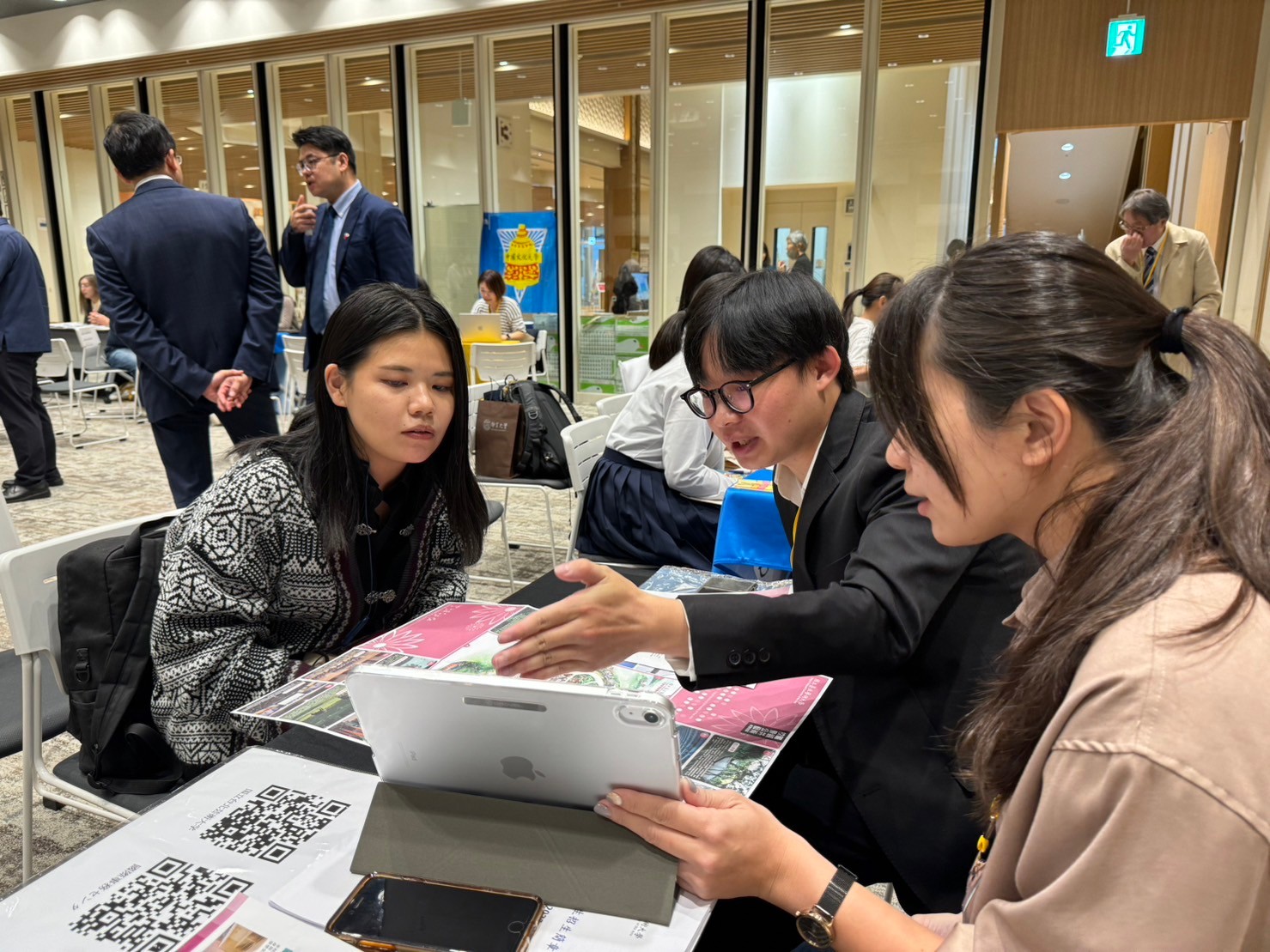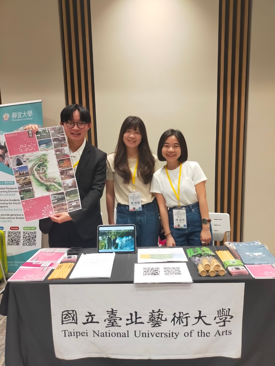 Our booth attracted many Japanese students for these two days. Many of these students demonstrated a keen interest in the field of arts and expressed their intention to consider our university for their future studies. Additionally, our two Japanese exchange students, Yuri Sato and Masaya Hadana from Okinawa Prefectural University of Arts in the 111-1 semester, specially visited our booth. There were also Japanese students from Okinawa Prefectural University of Arts who came to inquire about the exchange program. We hope to promote TNUA and attract more outstanding Japanese students through this exhibition opportunity.